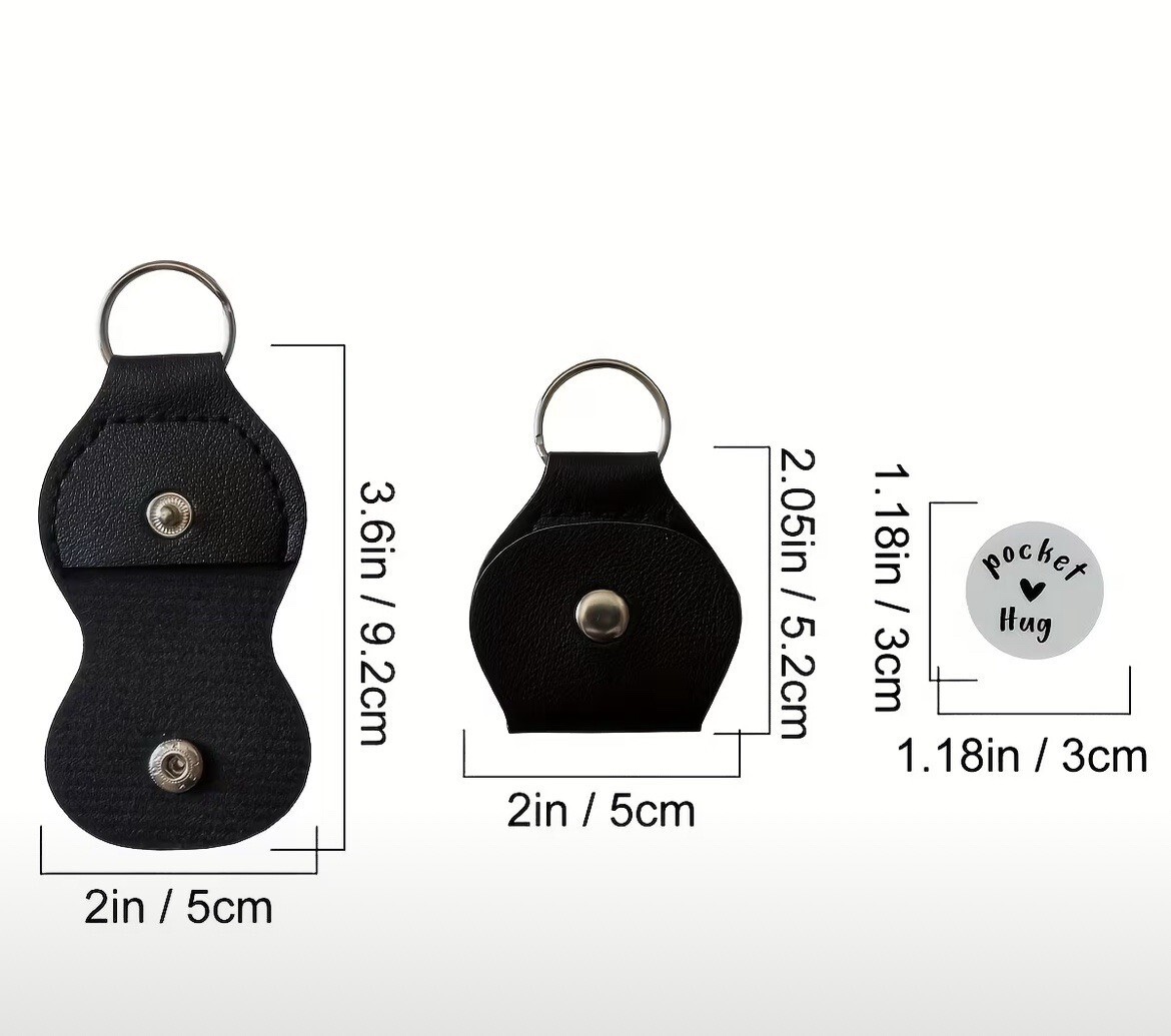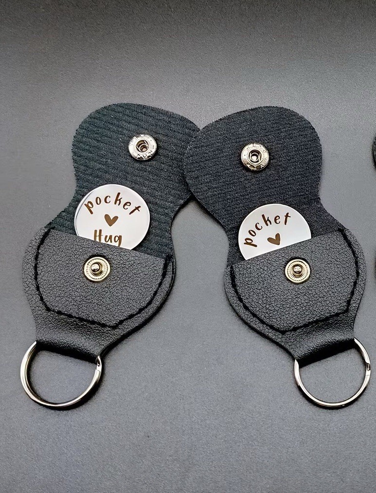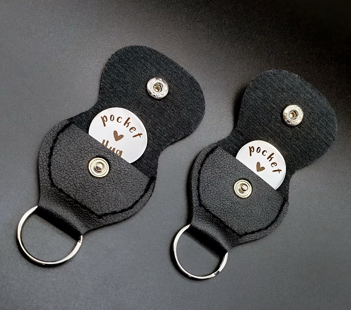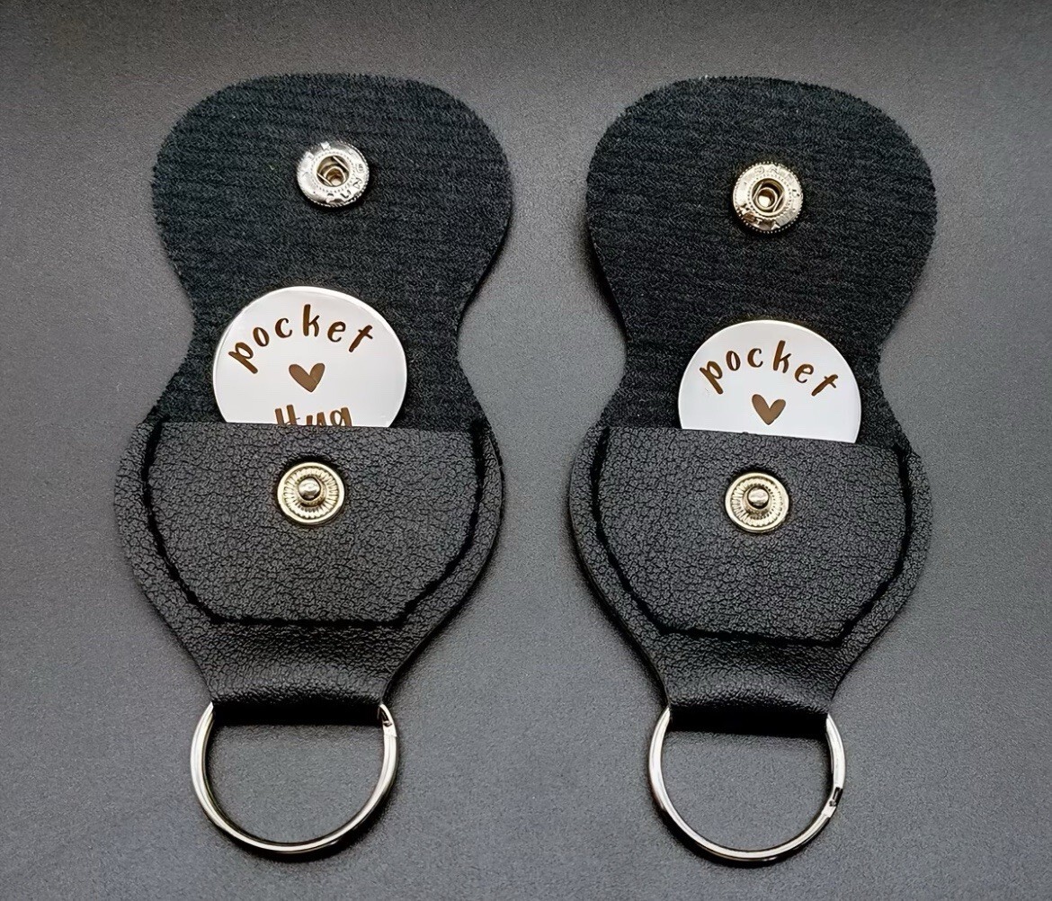 2 Pk Pocket Hug Token with Faux Black Leather Keychain.