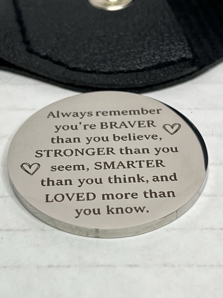2 Pk Pocket Hug Token Faux Leather Keychain, Braver, Stronger, Smarter, Love