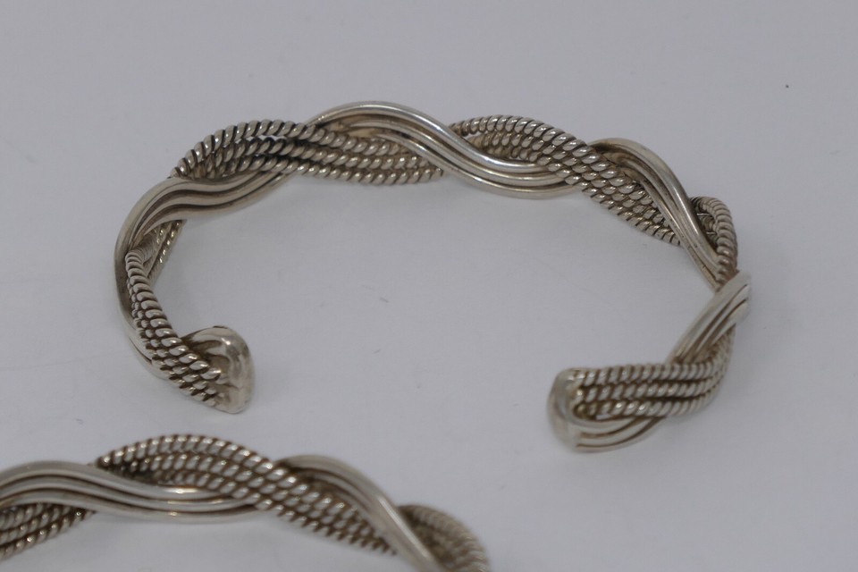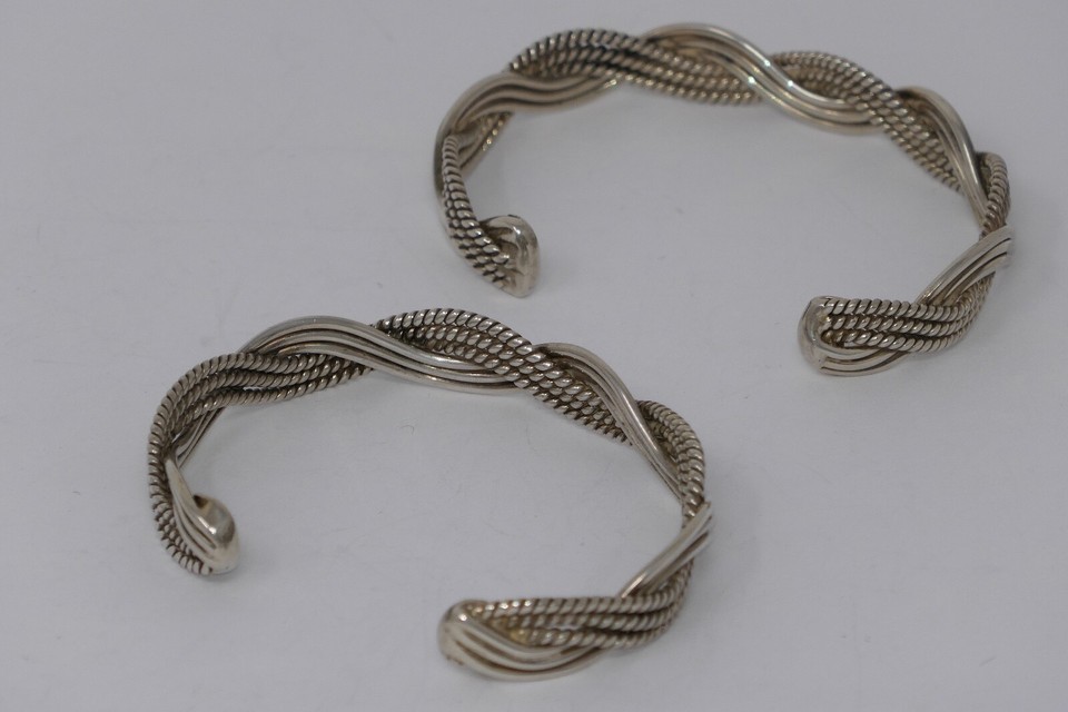 Up for sale is a pair of Cii Designer Signed .925 Sterling Silver Twisted Rope Cuff Bracelet. These measure approx. 6.25" long and weigh 46g together.