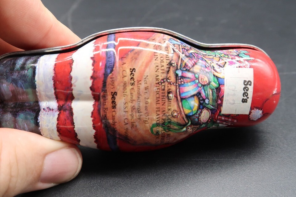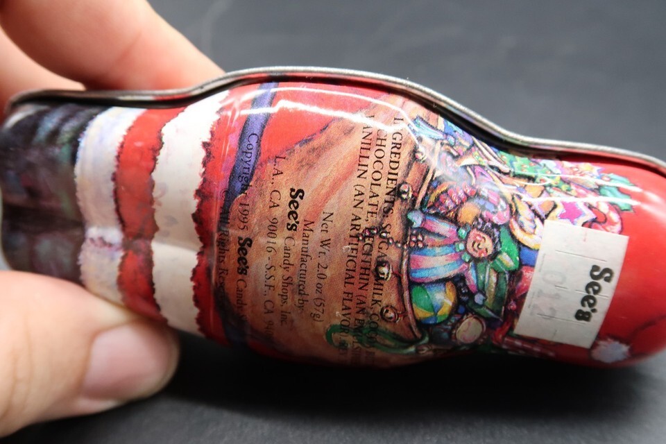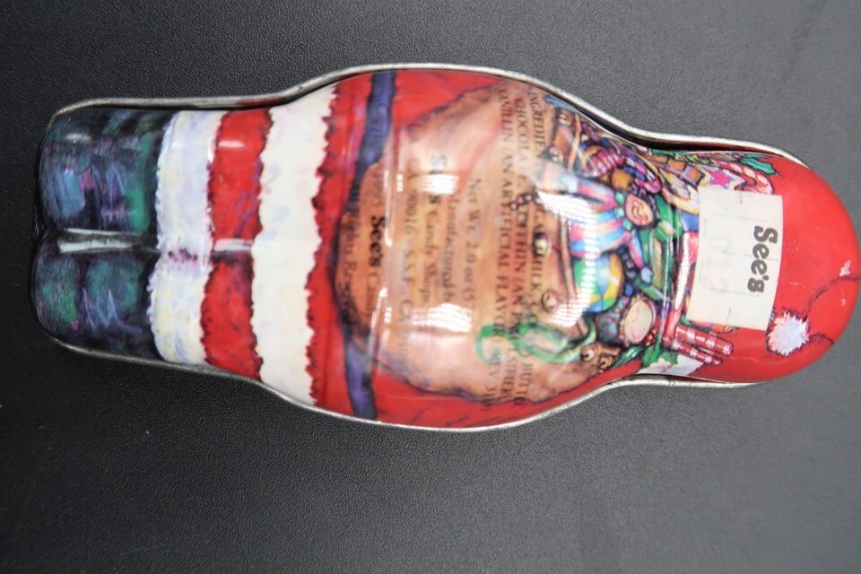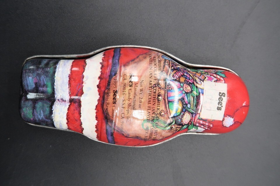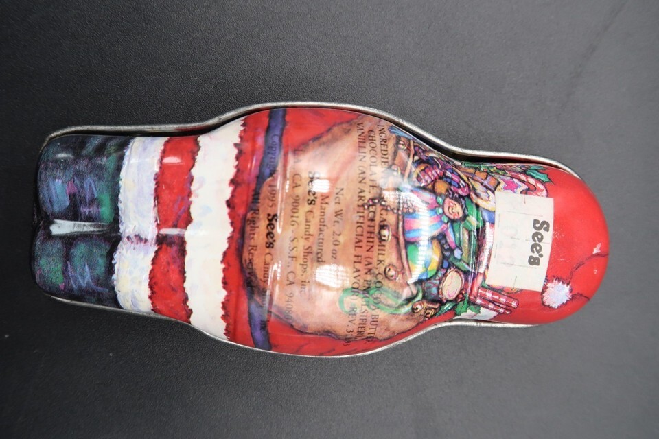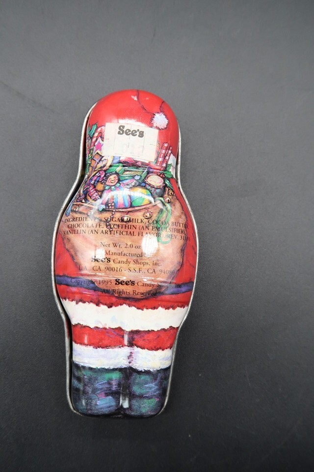 Vtg Santa Claus Shaped Tin Box Container See's Candy Shop CA 1995 4.5"