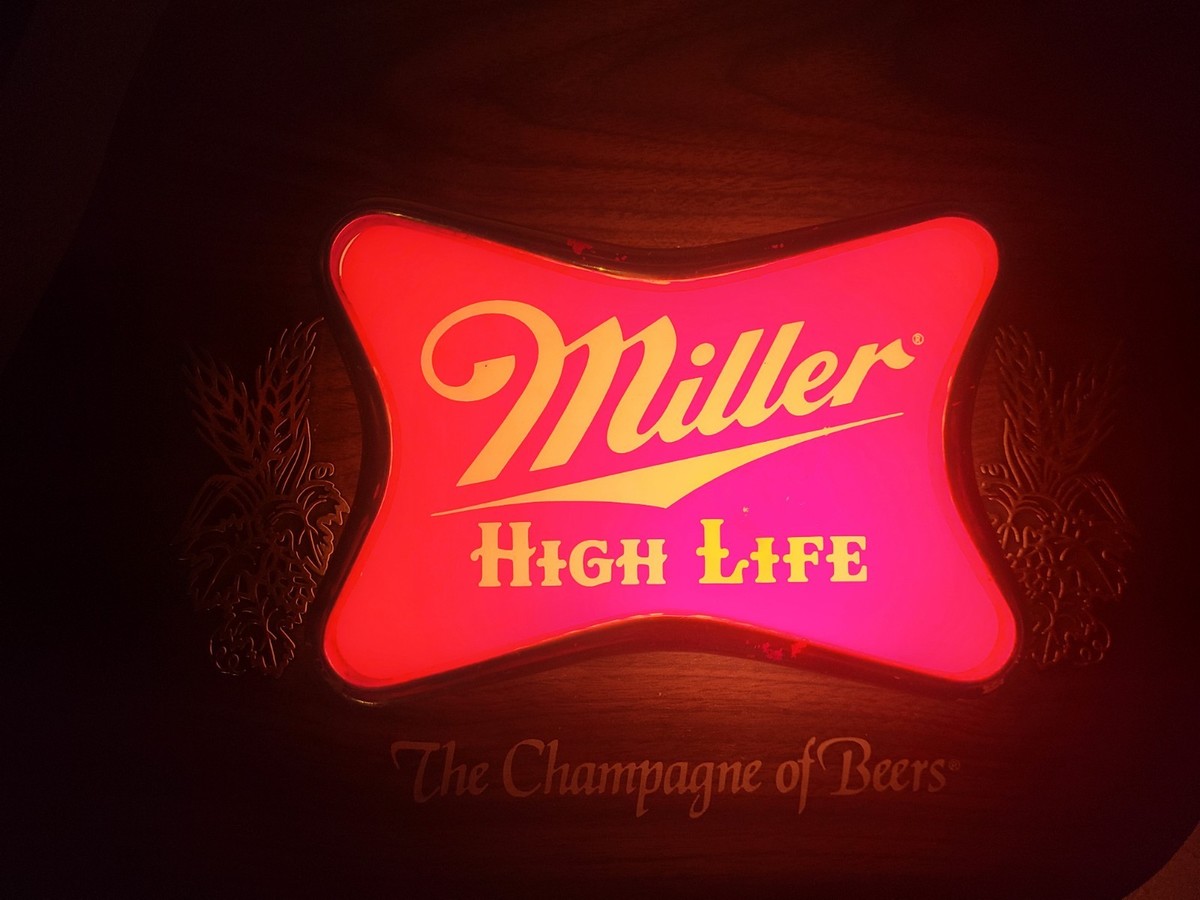 Vintage Miller High Life Lighted Beer Sign 25" x 12" The Champagne Of Beer READ