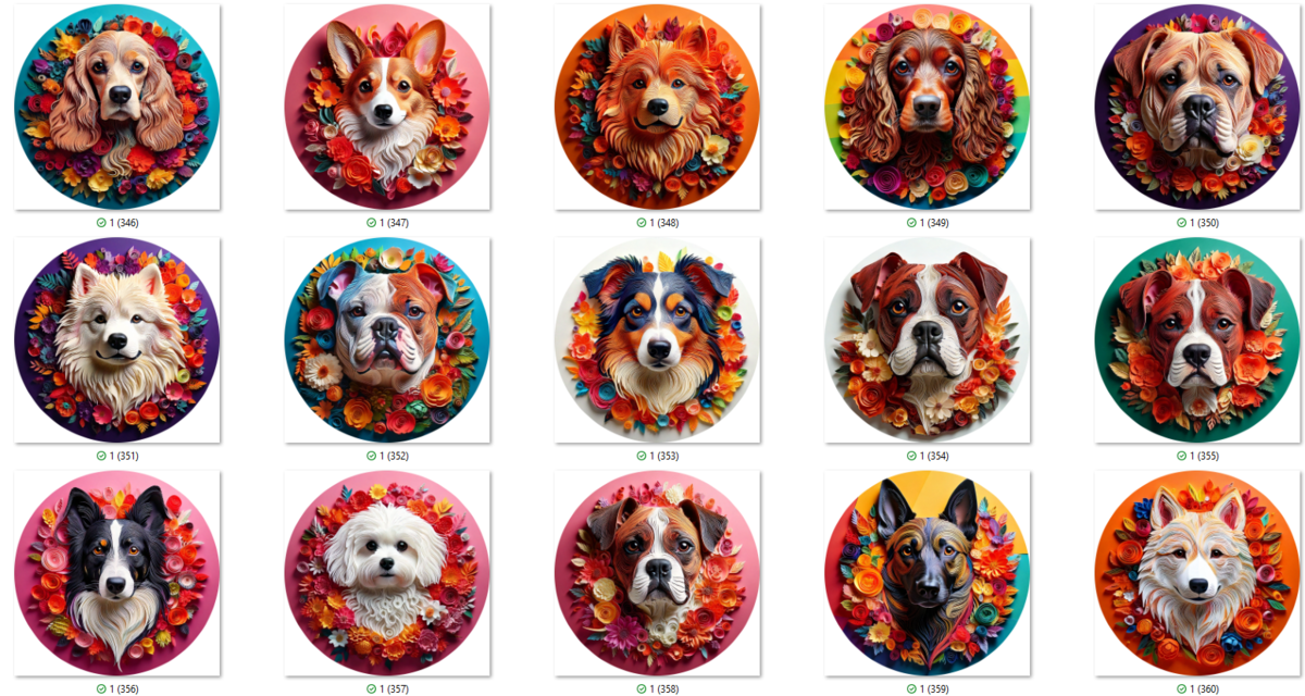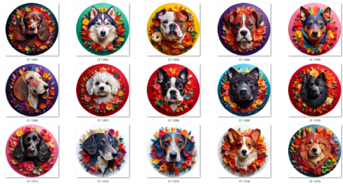 100 PNG 3D DOG COASTER CLIP-ART BUNDLE. Digital download bundle featuring cute dogs in beautiful color