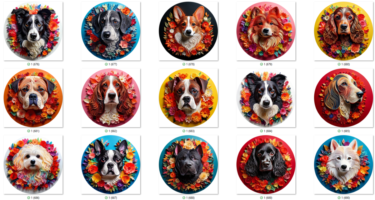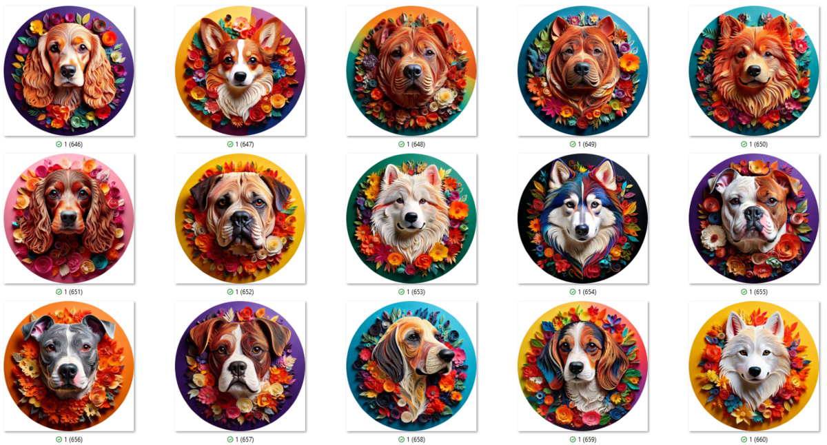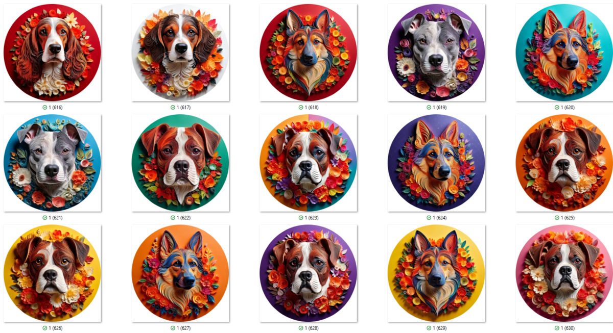 100 PNG 3D DOG COASTER CLIP-ART BUNDLE. Digital download bundle featuring cute dogs in beautiful color