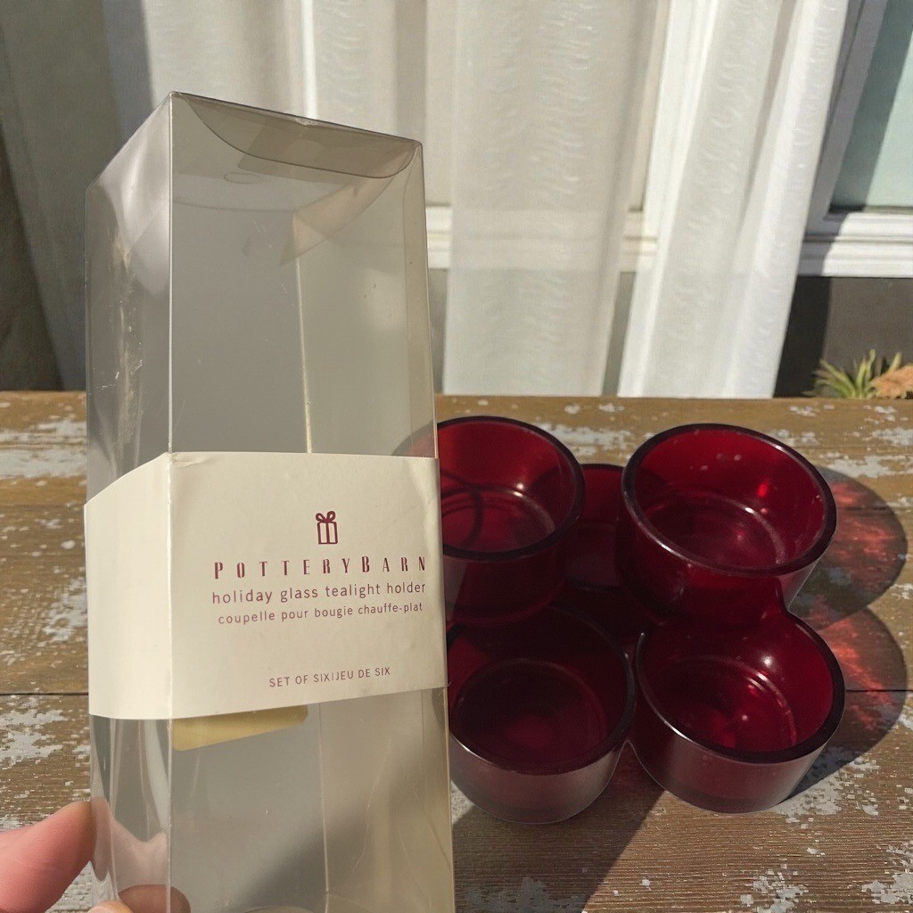 Pottery Barn Holiday Glass Tealight Holder Set Of 6 Red Made In China