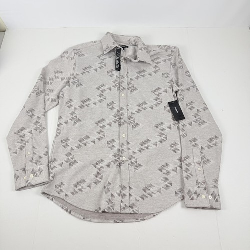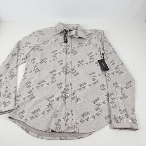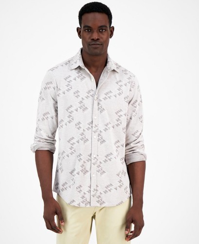 Alfani Men's Jacquard Knit Button-Down L/S Shirt Silver Cloud Heather-Small