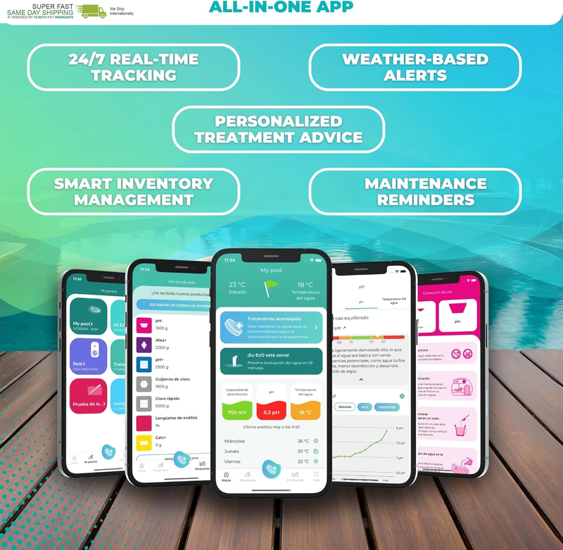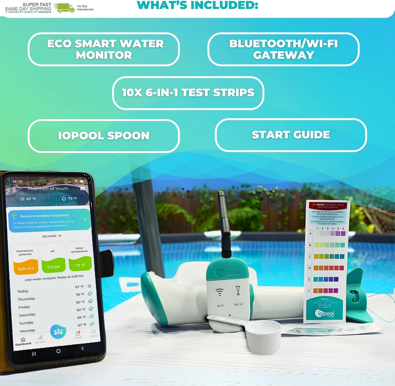 ??? Guided pool care: iopool guides you through all the steps of the maintenance process to ensure safe and clear water for you and your family. You can also receive personalized alerts based on the actions to be taken.