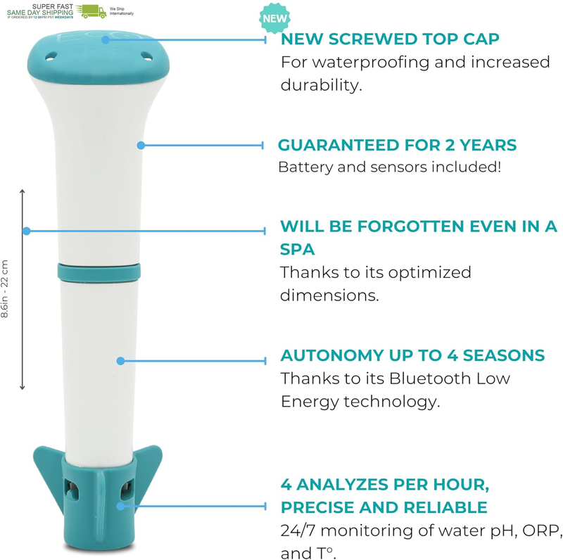 Smart Water Monitor - Works for Chlorine Bromine Pools, Hot Tubs, Swim Spas - Gives Precise Dosage Recommendations.