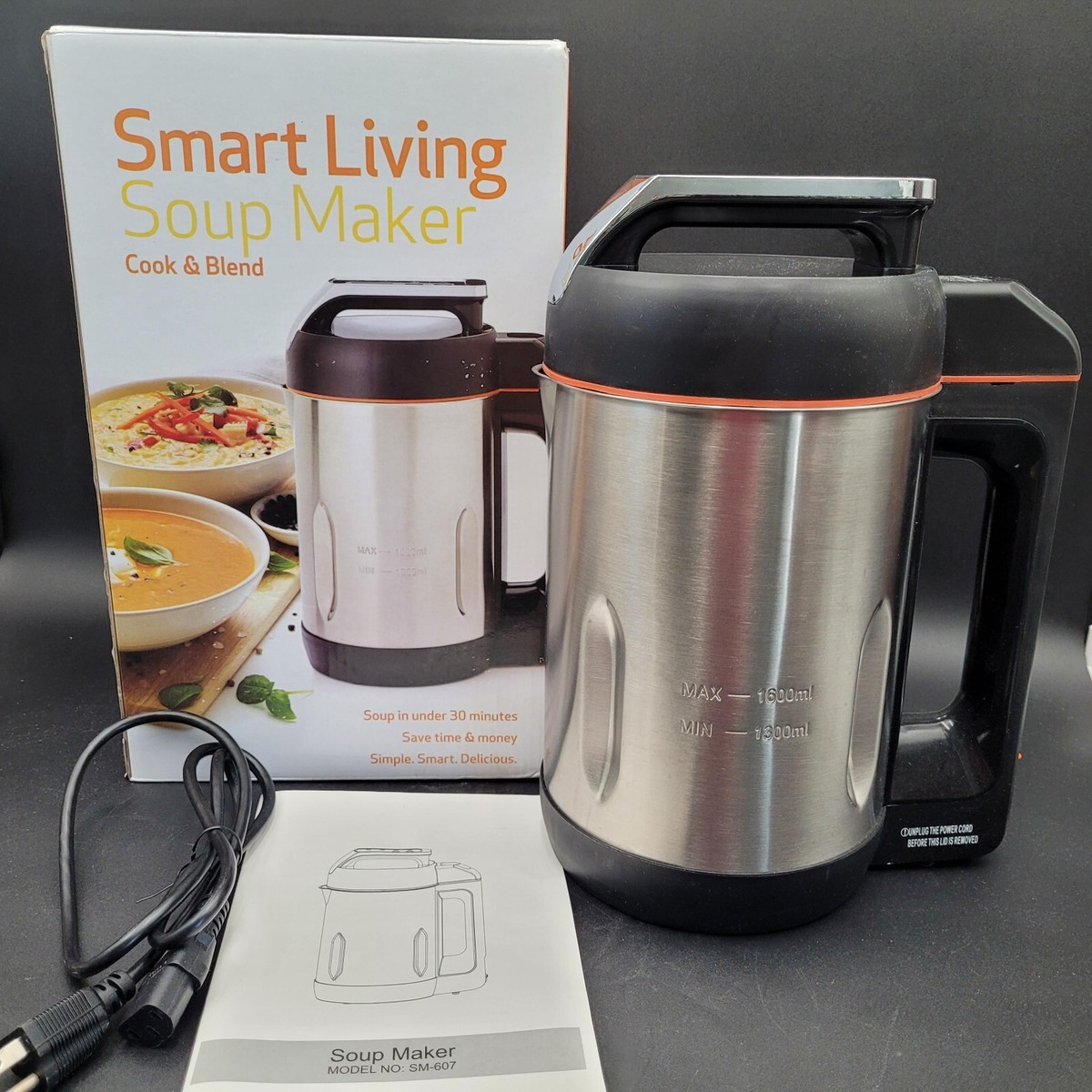New Smart Living Soup Maker Blend Heater Mixer Intertek SM-607 1600ml 4 Settings