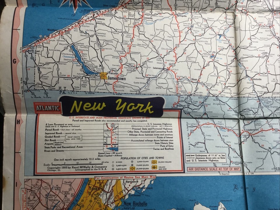 Vintage Atlantic Refining Co Map New York NY State Street Road Map 1955