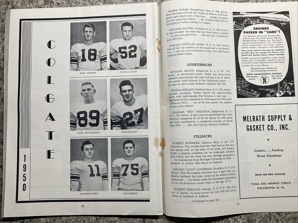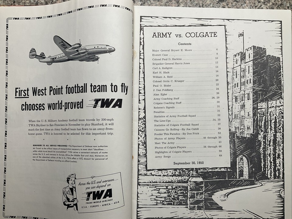 September 30 1950 Army -West Point vs. Colgate University Football Program EX-MT