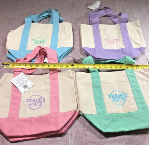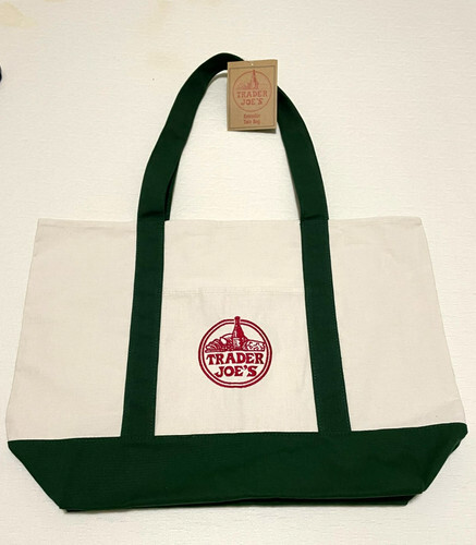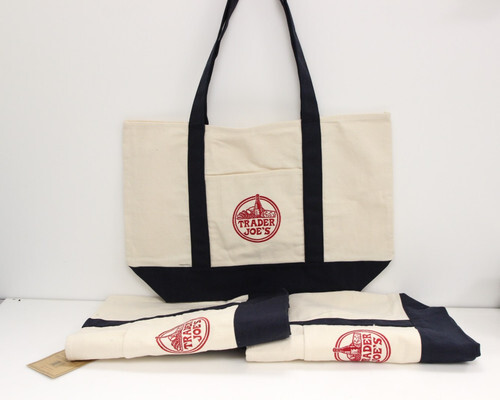 This Trader Joe's Market Tote Bag in blue is a medium-sized shopping bag made from durable canvas and heavy-duty cotton material. It features a fun retro design with a waffle and toast theme, making it a stylish and reusable option for carrying your shopping items. With functional straps and a foldable design, this limited edition tote bag is easy to use and care for, showcasing the original Trader Joe's brand charm. Perfect for everyday shopping, this tote bag adds a touch of fun and sustainability to your household supplies.