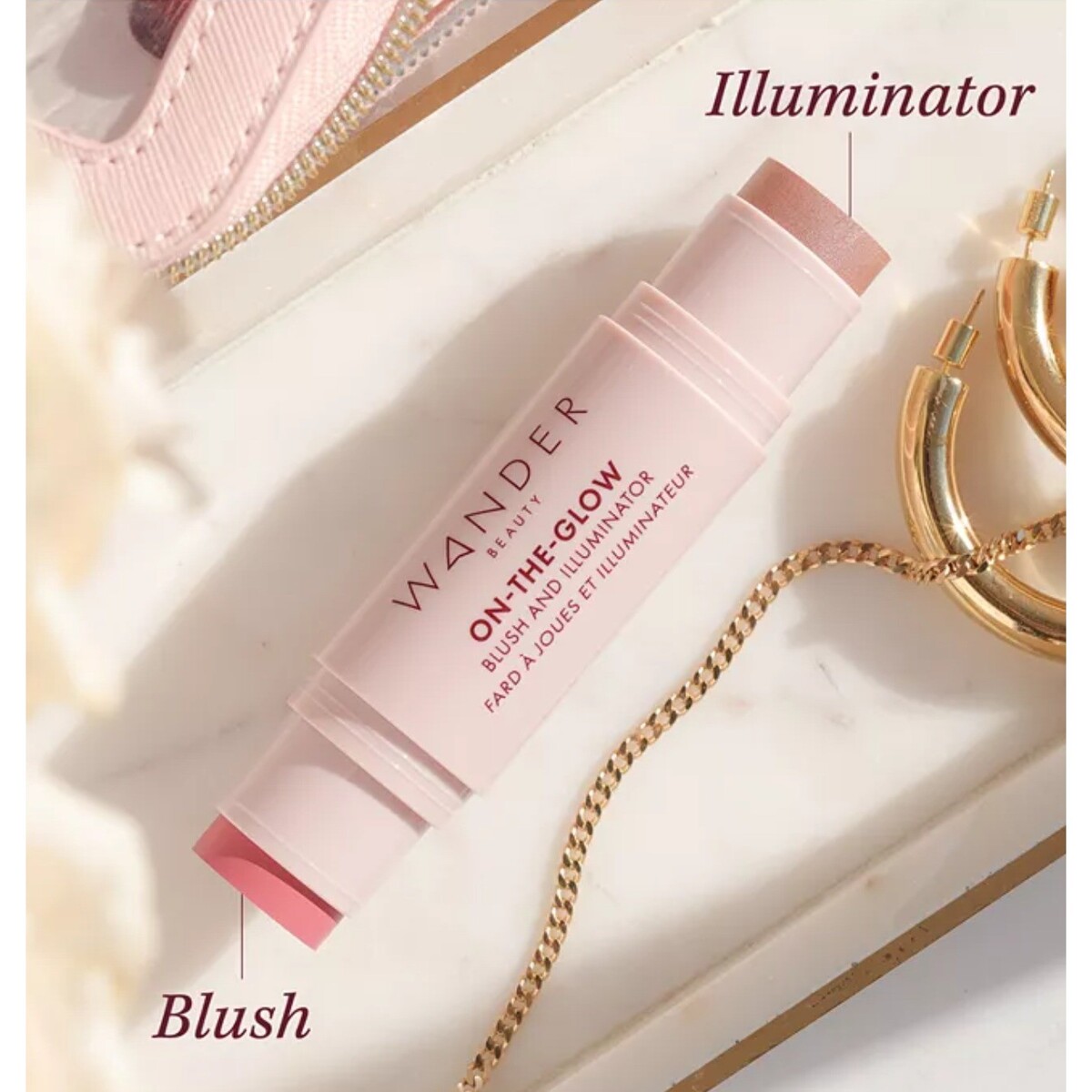 Swap blush, lipstick, highlighter and eyeshadow for this single multitasker to create space in your beauty bag and streamline your beauty routine. The blush and illuminator stick delivers a full look in the palm of your hand. With cream color on one end and a buildable illuminator on the other, On-The-Glow keeps you gorgeous on the go.