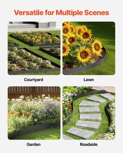 · Versatile for Multiple Applications: Ideal for creating garden fences, defining borders along roadsides, or separating various outdoor zones. This galvanized steel garden edging not only adds a neat structure to your outdoor space but also serves as a decorative element to enhance your landscape's aesthetic appeal.