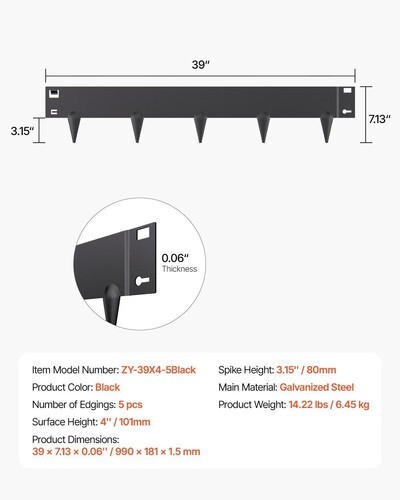 · What You'll Receive: Each set includes 5 metal flowerbed edging borders, 1 pair of installation glove, and 1 instruction manual. The extended spiked design ensures easy installation by helping the barrier penetrate the ground with less effort. Spend more time enjoying your garden and less time maintaining it!