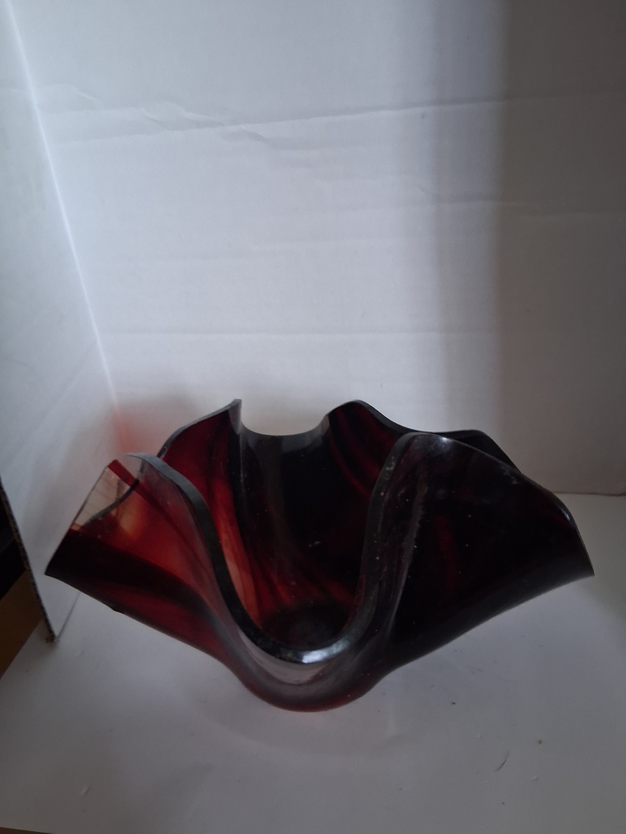 7" Cranberry Red Swirl Handkerchief Ruffle Vase Bowl