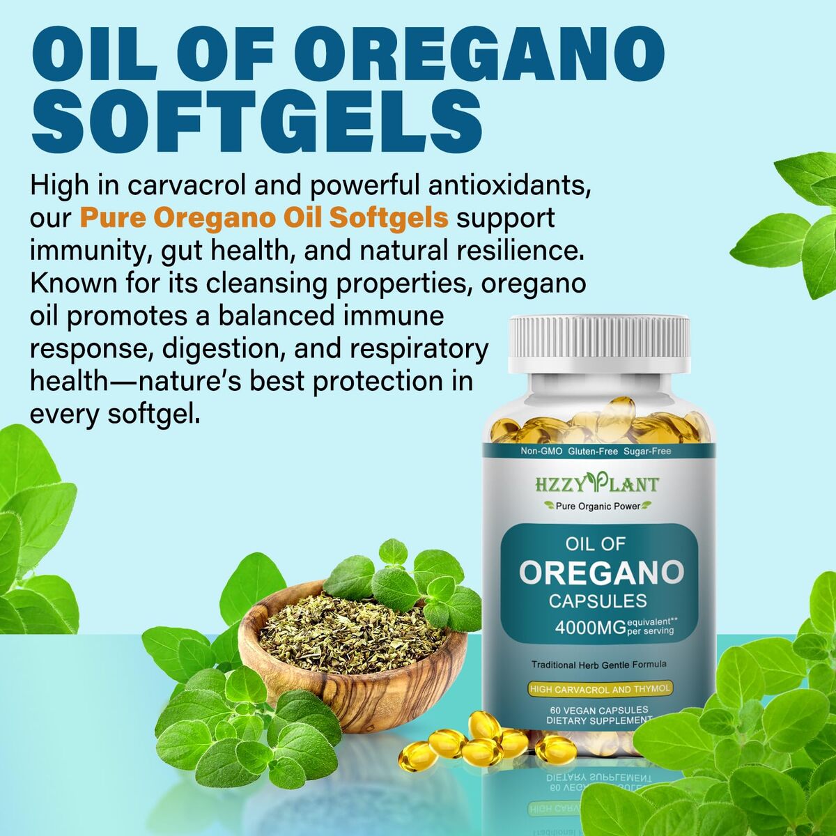 PURE POWERFUL OIL OF OREGANO SOFTGELS: Packed with natural carvacrol and thymol, our Oil of Oregano Softgel Capsules provide a potent immune boost and antioxidant support to help your body defend against seasonal challenges. Sourced from high-quality oregano, this traditional herbal supplement supports digestive health, respiratory function, and overall wellness?naturally. Easy-to-take softgels offer a convenient way to incorporate this botanical ingredient into your daily routine.