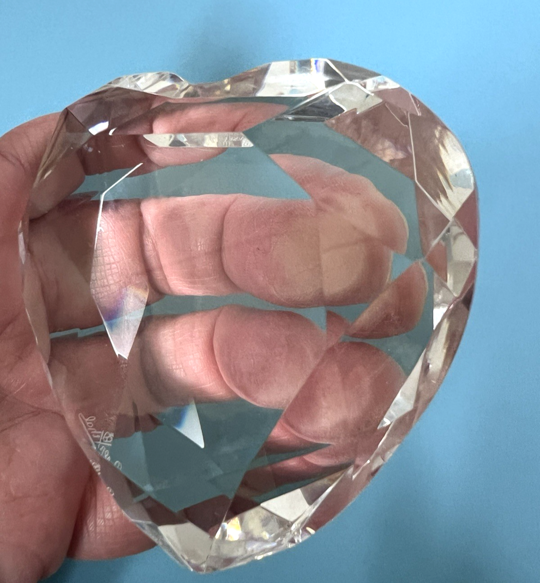 Rosenthal Signed Crystal Heart Shaped Paperweight Faceted Cut 3.5" Heavy