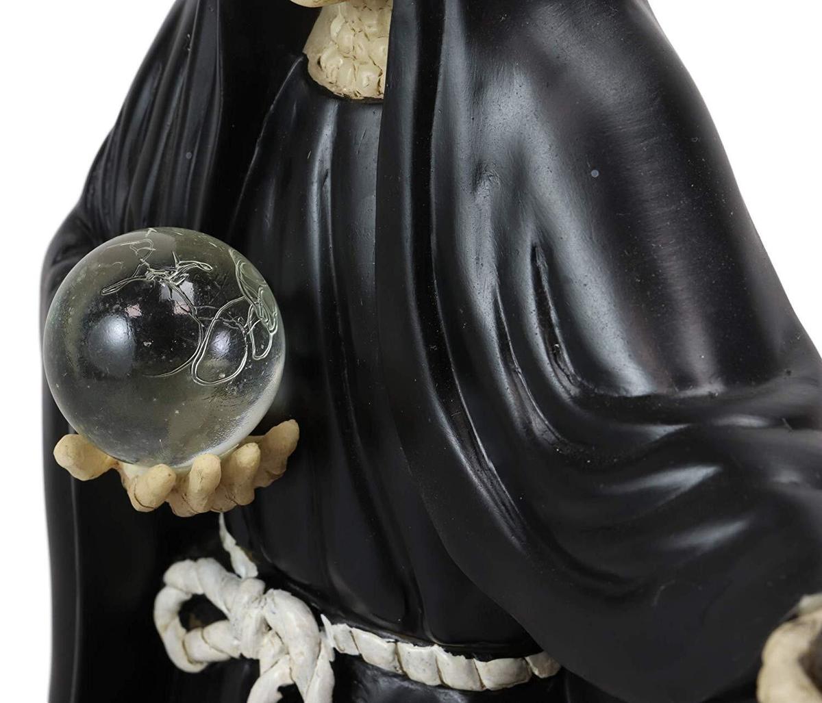 ? This Santa Muerte Holding Globe Scythe Scales Figurine is made of designer composite resin, hand painted and polished individually. Color Tone may vary