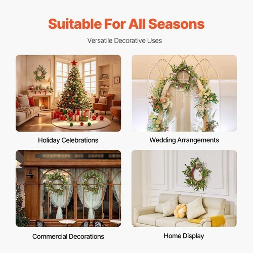 Made from high-quality wicker, this all-season wreath's base features a realistic appearance and sturdy structure. It provides a solid foundation for your creative decorations, maintaining beauty and stability for long-lasting use, whether for home decor or special occasions.