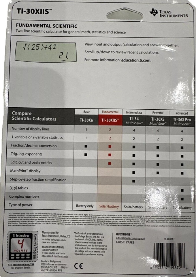 Texas Instruments TI-30XIIS Scientific Calculator College Math SAT/ACT NEW