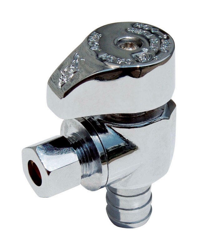 Shark bite 1/2" X 3/8" Od brass barb compression chrome angle stop quarter turn 1 per bag