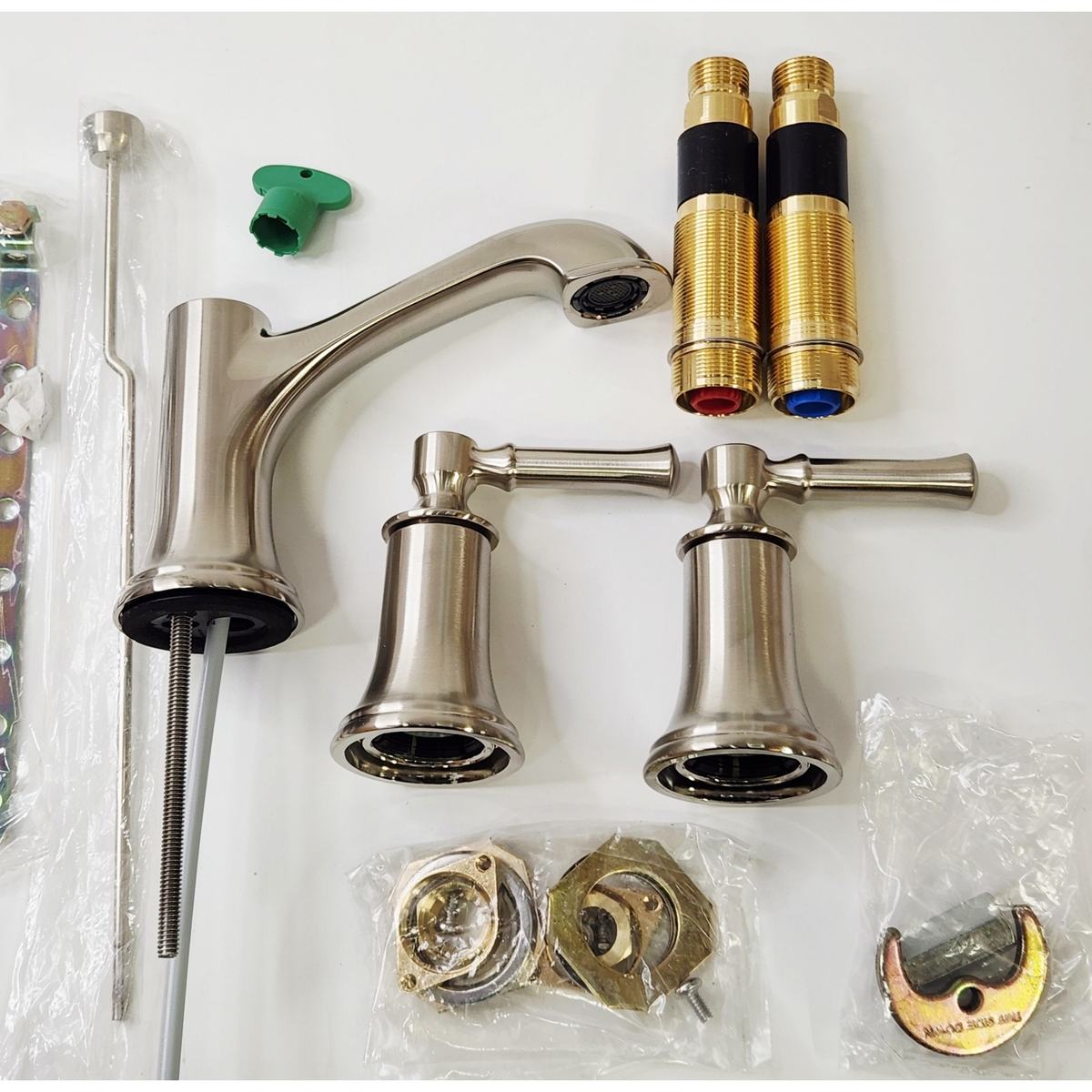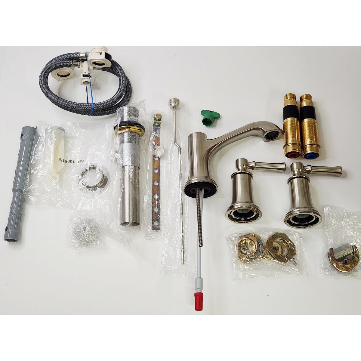 Faucet Assembly, Drain, Valve, Lever Handles, Mounting Hardware |