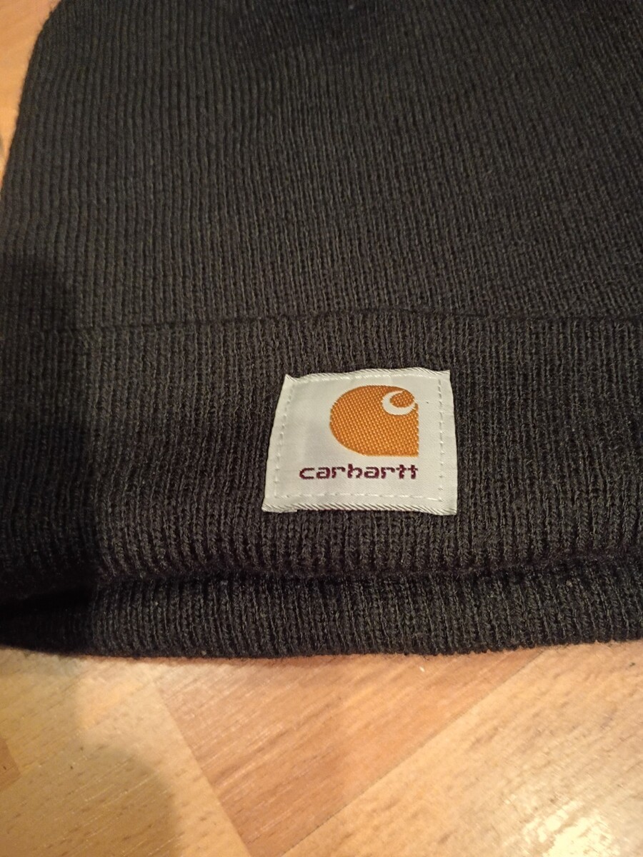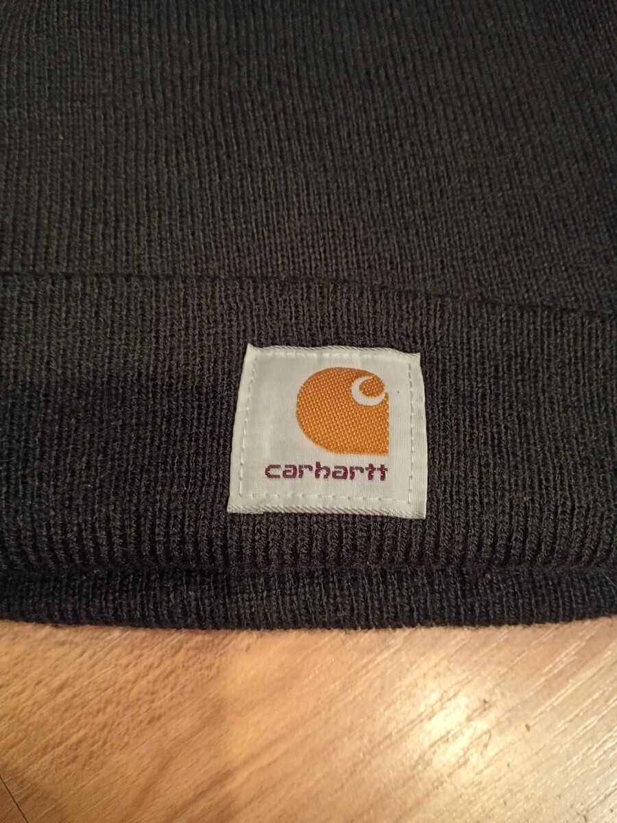 Carhartt Acrylic Knit Cuffed Beanie Hat Black Yellow Logo Unisex One Size. Great condition