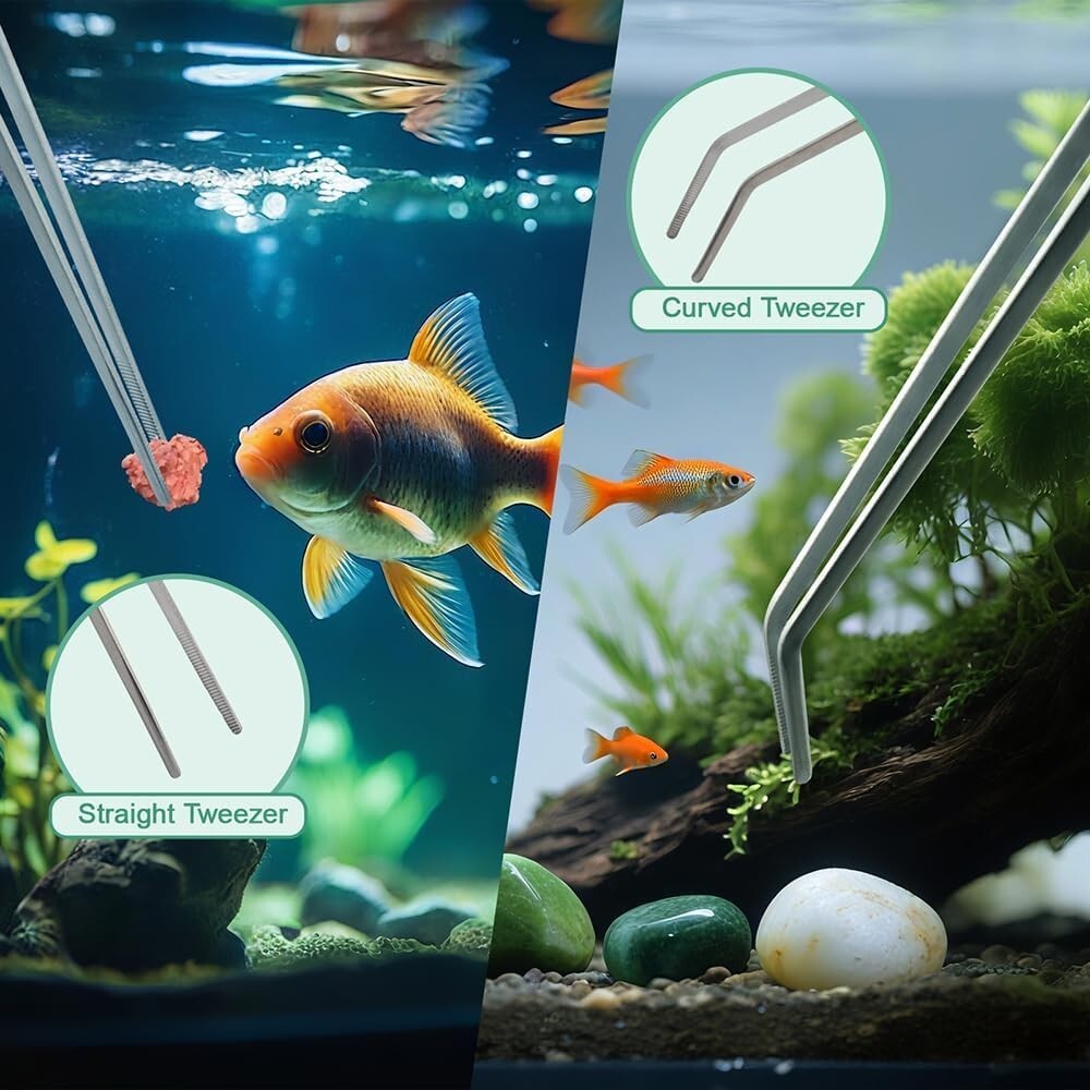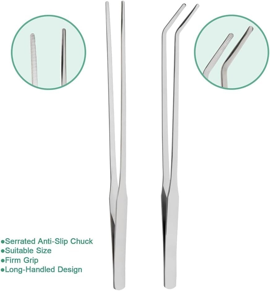 2PCS Long Aquarium Tweezers - 10.6" Straight and Curved Tweezers, Stainless Stee