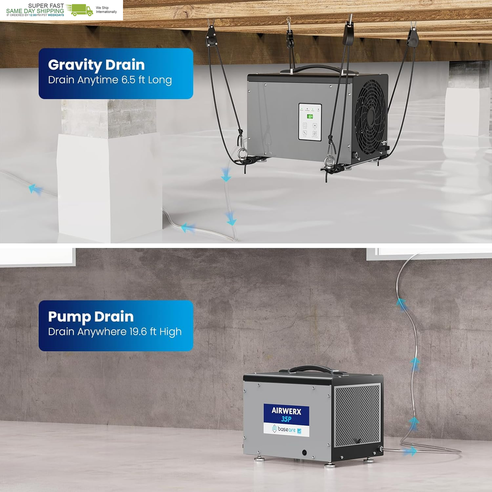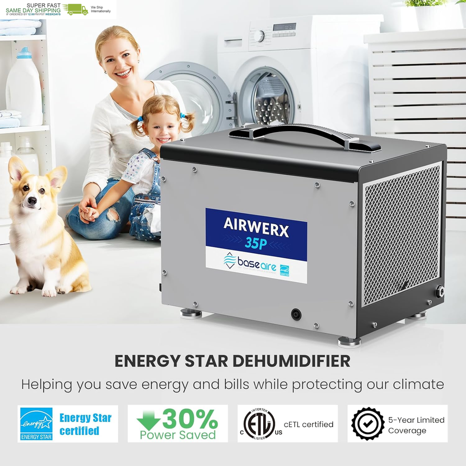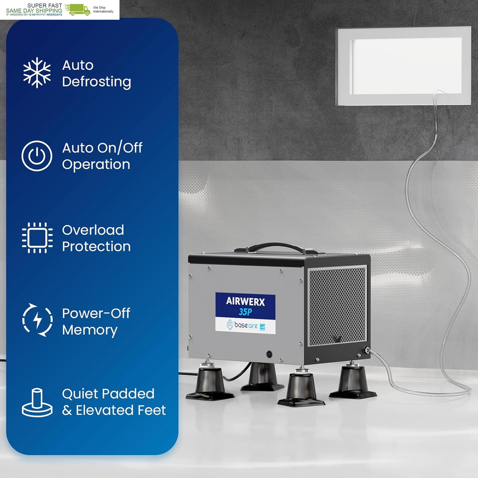 Quality Support: BaseAire Crawlspace Dehumidifiers come with a 5-Year Limited Support and lifetime access to expert tech support. Our team of professionals will promptly address any questions you may have, ensure your complete satisfaction, and provide a timely solution to meet all of your needs.