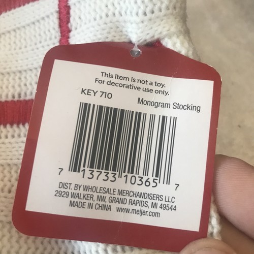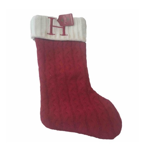 December Home 20 Inch Red & White Fur Stocking “H” Christmas (SHIPS IN 24 HRS)