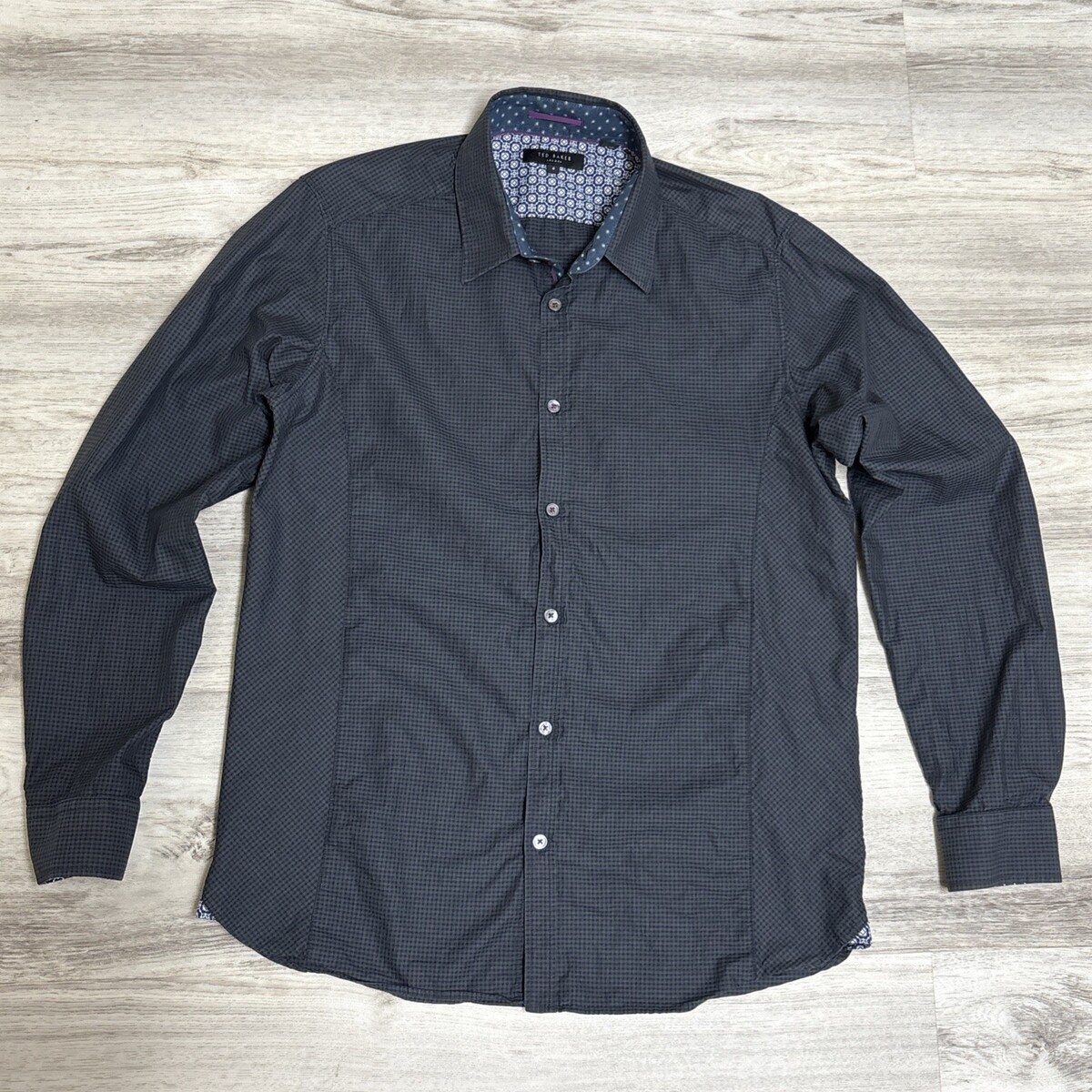Ted Baker London Men's Long Sleeve Button Up Shirt Gray Black Flip Cuff Size 3