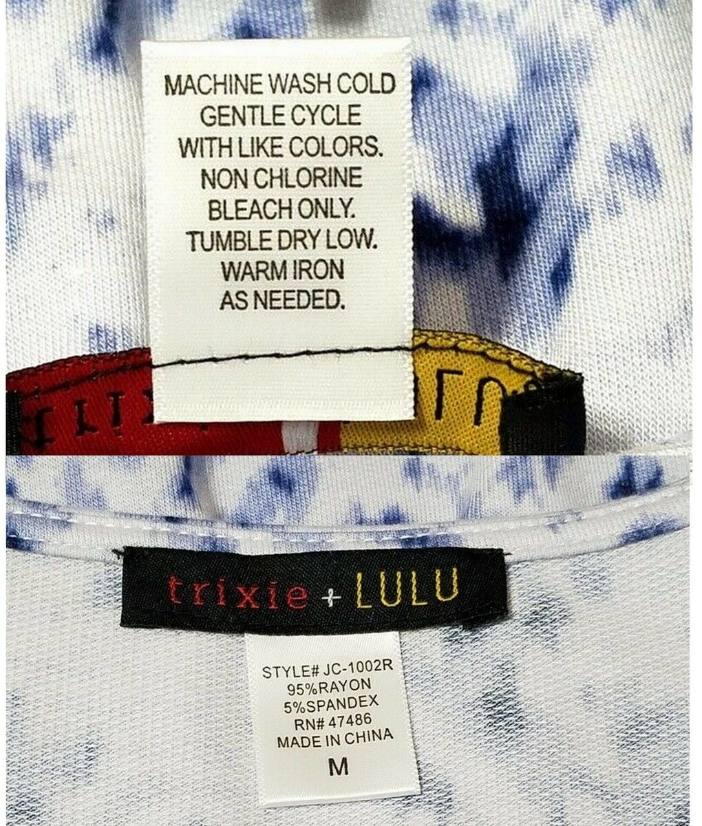 This Trixie + LuLu women's dress features a trendy tie-dye pattern in shades of blue. The A-line dress has a flattering crew neckline and short sleeves, making it perfect for casual occasions in spring and summer. The pleated accents and 40-inch dress length add a touch of elegance to the dress, while the spandex and rayon material makes it comfortable to wear and easy to care for with machine washable instructions. This dress is ideal for women who want to make a statement without sacrificing comfort. It is available in size medium and is perfect for any fashion-forward woman who loves to stand out from the crowd.