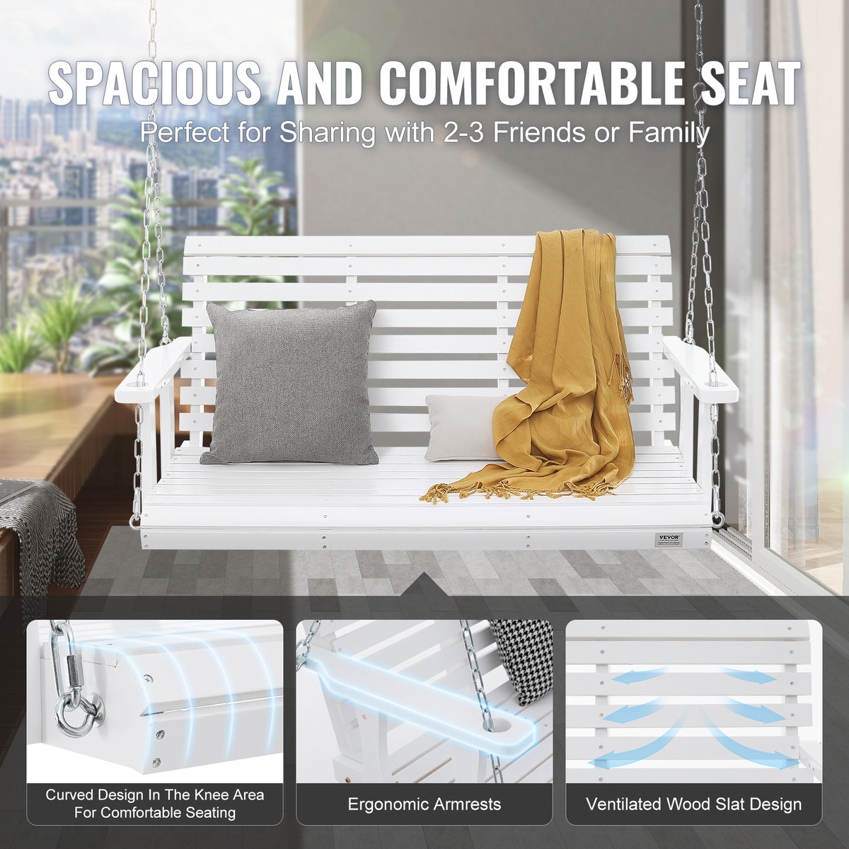 VEVOR 4.5ft Wooden Porch Swing880lbs Heavy Duty Patio Bench Hanging Chains White