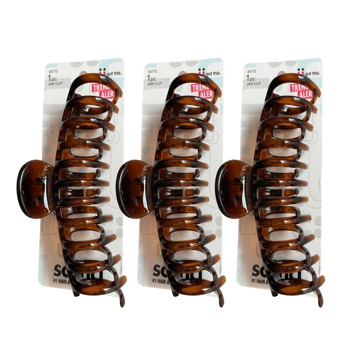 Pack of 3 Scunci Large Barrel Jaw Clip Hair Clip Brown No Slip Claw for Women