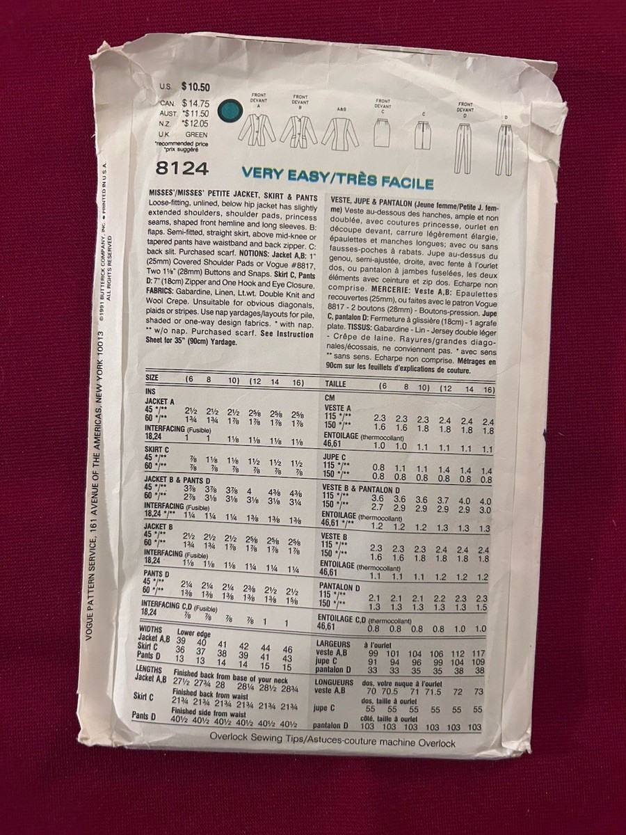 Vtg Vogue Pattern 8124 Petite Jacket Skirt & and 50 similar items