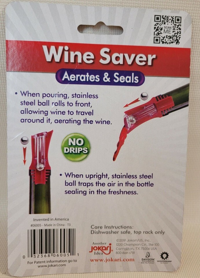 Jokari Wine Saver Aerates & Seals ~ No Drips!! NEW