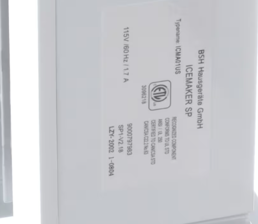 Bosch ICMA01US, 9000797983 Ice Maker is a genuine OEM Bosch ice maker assembly designed to deliver reliable and consistent ice production in compatible Bosch refrigerators. Operating at 115V, 60HZ with a 1.7A rating, this ice maker ensures efficient performance, proper water fill control, and dependable ice harvesting. Manufactured to Bosch factory specifications, it is intended as a direct replacement to restore original ice-making functionality.