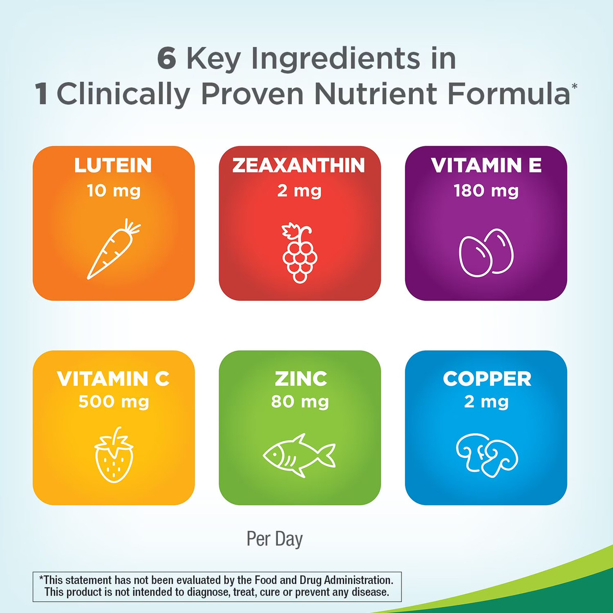 lutein, zeaxanthin, vitamin E, vitamin C, zinc, and copper. |