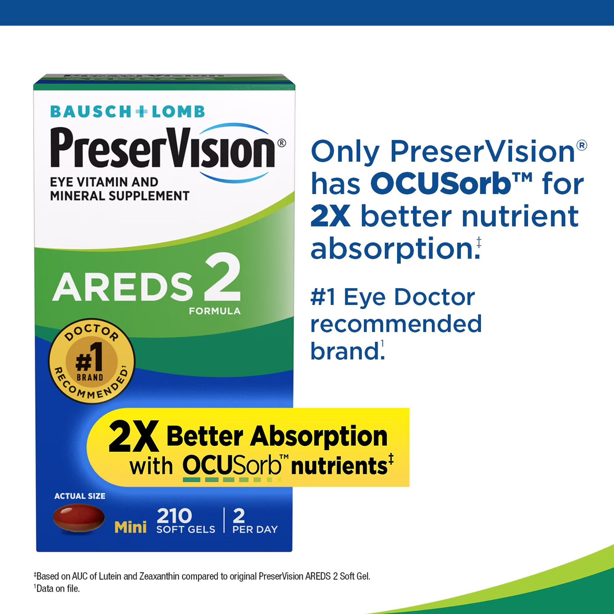 PreserVision AREDS 2 Formula Eye Vitamins – 210 Mini Softgels | Long Expiry 2027