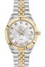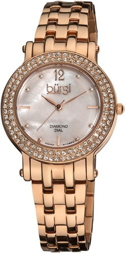 mother-of-pearl dial that is surrounded by Swarovski Crystal-accented bezels