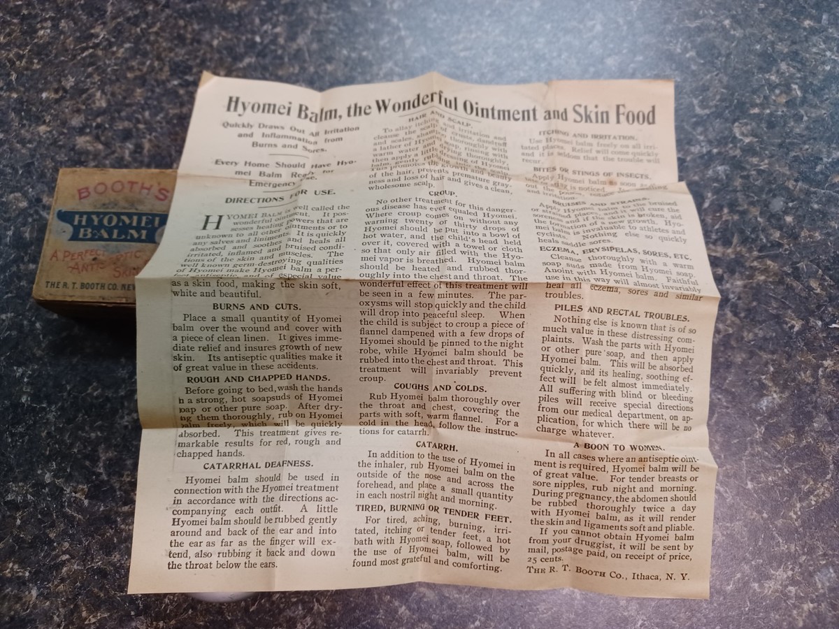 Old Quack Medicine Advertising R T Booth's Hyomei Co Ithaca NY Balm & Box