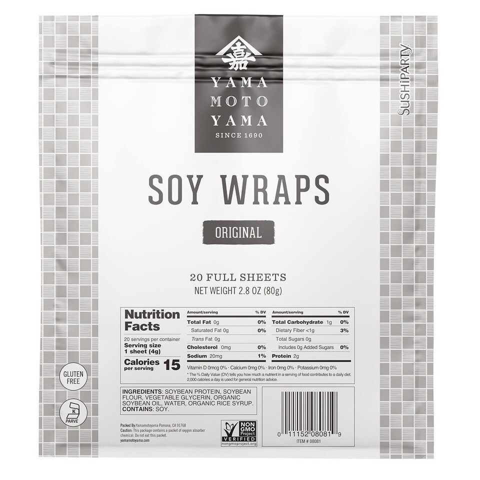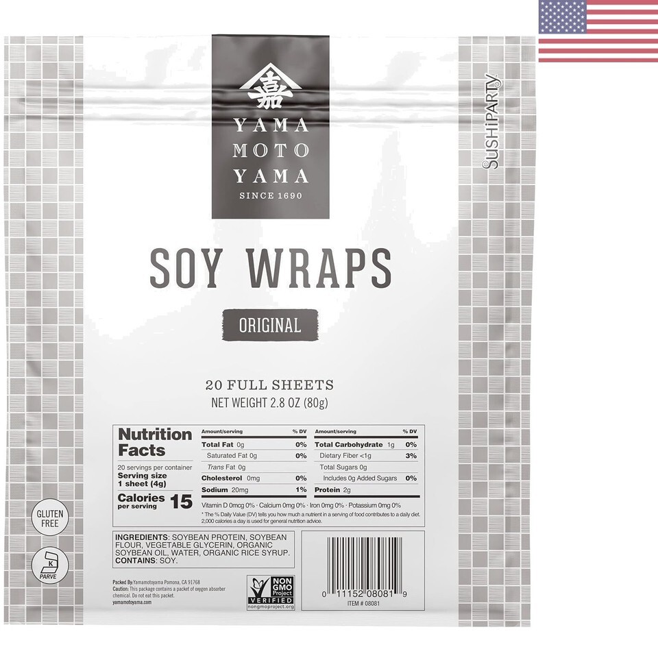 Elevate your sushi-making and culinary creations with our versatile Soy Wrappers. Made in the United States, these original soy wrappers are perfect for making sushi rolls and other creative dishes. With a convenient 20 count package, you'll have plenty of wrappers to experiment with. Whether you're a professional chef or a home cook, our high-quality soy wrappers will enhance the taste and presentation of your dishes.
