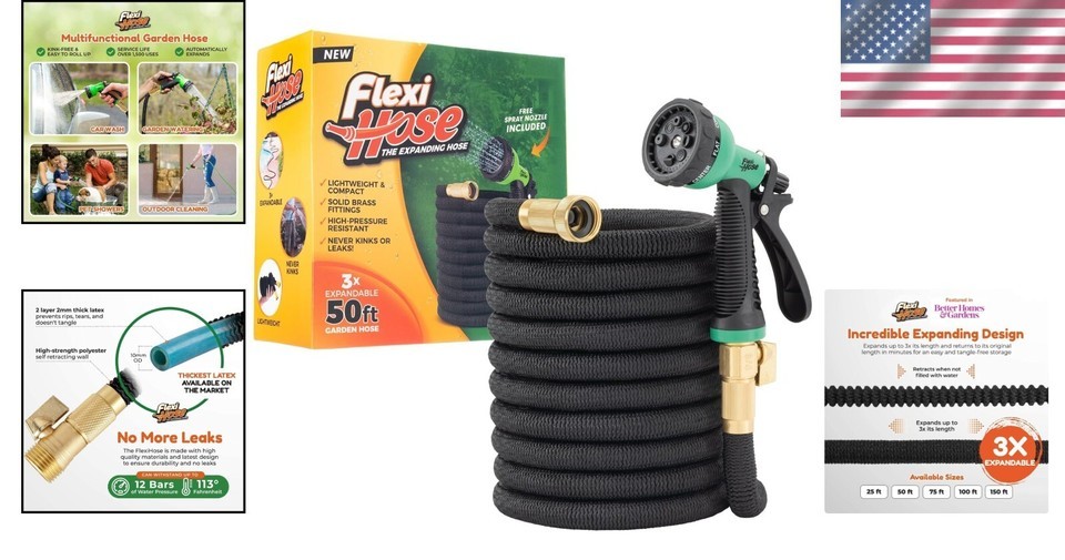 Constructed with robust materials, it withstands the rigors of outdoor use, complemented by a versatile spray nozzle for any watering task. Maximize your gardening efficiency and elevate your outdoor experience by ordering your Heavy-Duty 50FT Expandable Garden Hose today!