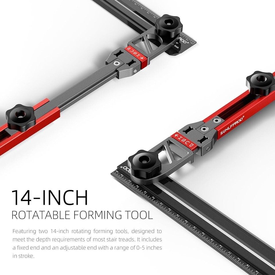 Rigorous Engineering for Efficient Work: Experience the remarkable durability and precision of our Stair Measuring Tool, proudly designed with a sleek Red-Gray color scheme that is both stylish and functional. Built from cutting-edge aluminum alloy, this measuring tool boasts a CNC anodized surface that is wear-resistant and rust-proof, ensuring a long-lasting investment.