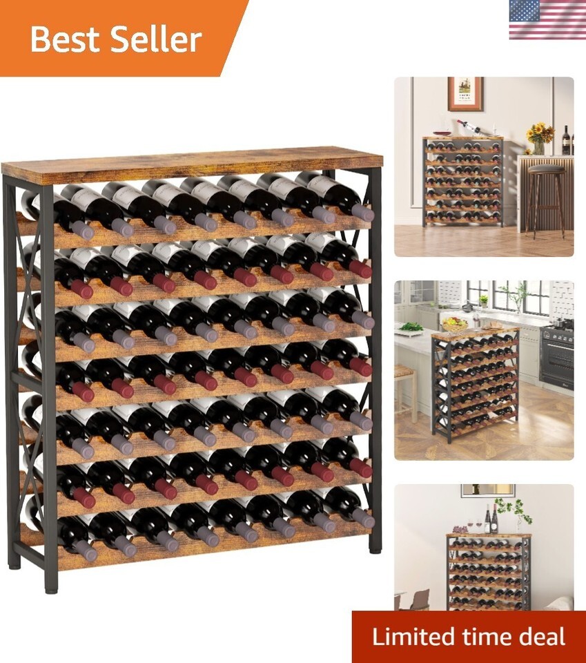 Industrial 56-Bottle Freestanding Wine Rack with Sturdy Tabletop - Easy Assembly