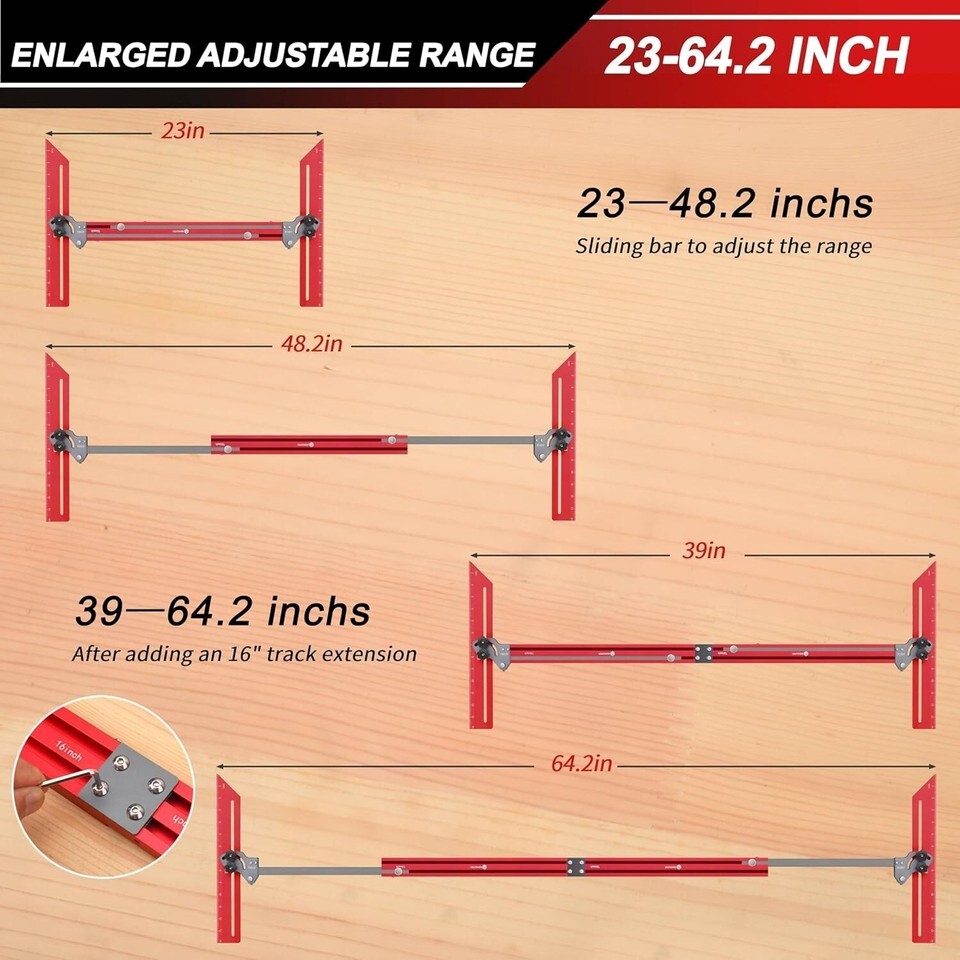 Measurement Range: 23?48.2 inches; expandable with a 16-inch extension track for a total range of 39?64.2 inches.