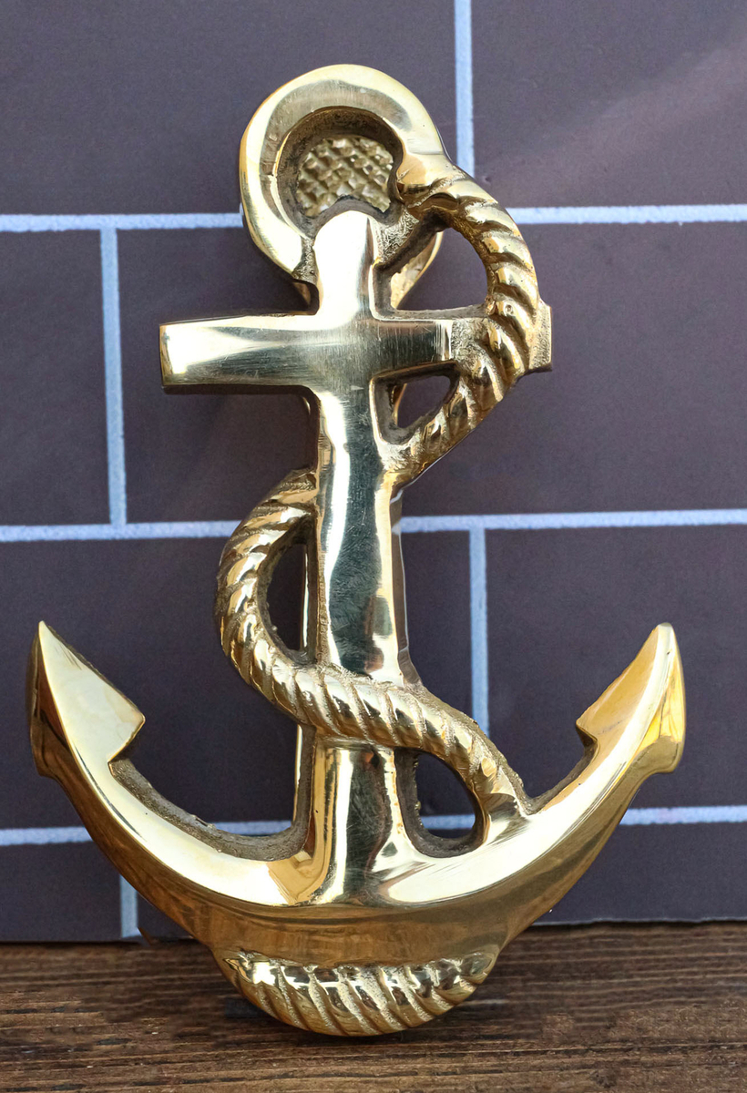 ? This Vintage Sailor Anchor Door Knocker is made of brass, hand cast and polished in gold color finish individually. Create an inviting doorway with this nautical door knocker,