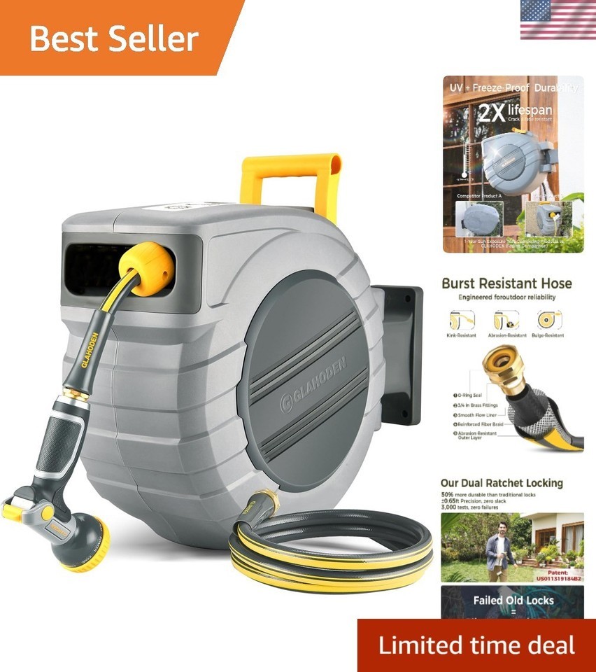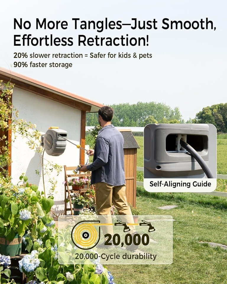 Features: Automatic Rewind,Lightweight Design,50% Reduction in Resistance,Precision Dual Ratchet Locking,UV-Resistant Coating,Freeze-Proof Durability,Burst Resistant Hose,220 lb Heavy-Duty Wall Mount,9-Spray Versatile Nozzle,Ergonomic Non-Slip Grip,Free Defect Replacements,Lifetime Technical Support,24/7 Customer Service