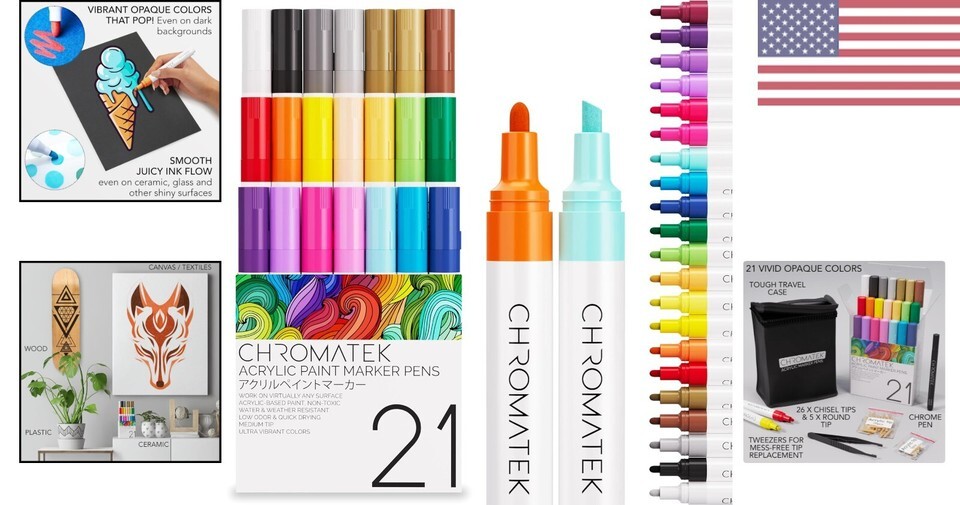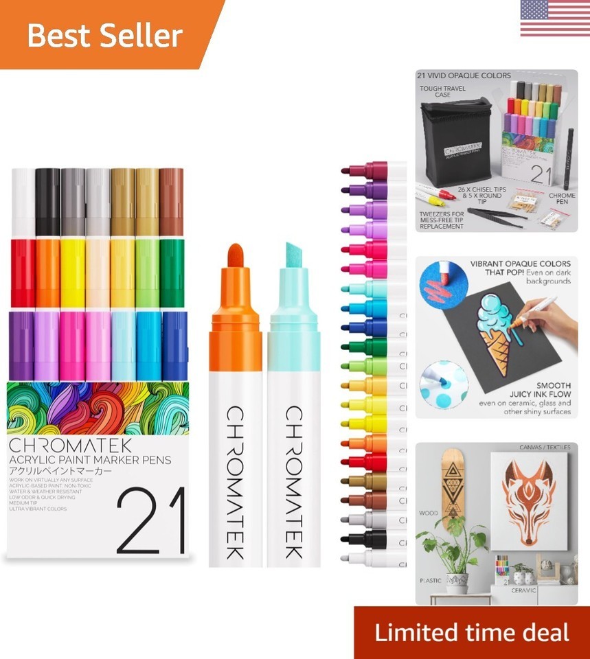 Unleash your creativity with our Artisan 21-Piece Acrylic Paint Markers. With a dual-tip design and vibrant colors, these markers are perfect for all your crafting projects. The medium point type and chisel style tip ensure precision and versatility, allowing you to create intricate details or bold strokes with ease.