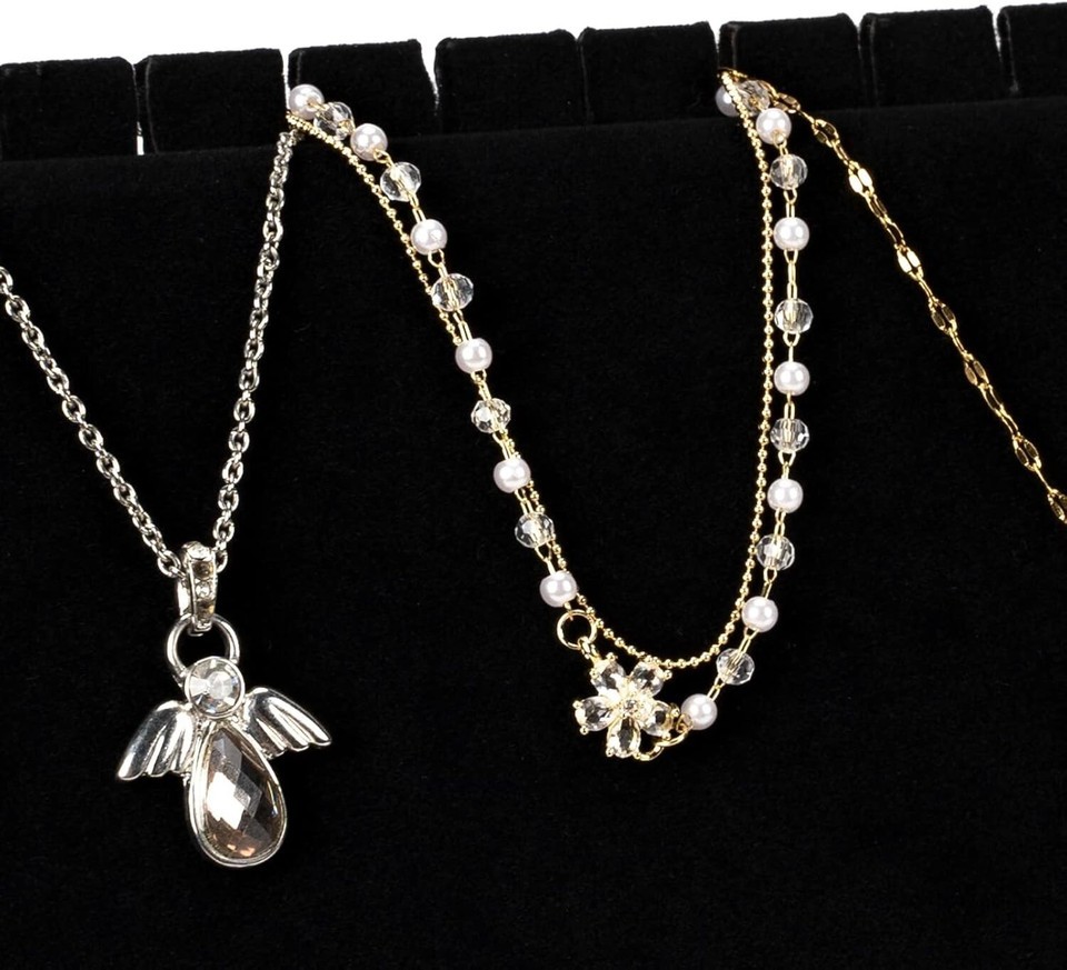 NECKLACE ORGANIZER STAND: Made of black velvet and natural solid wood, which can protect your jewelry from damage, also the necklace holder stand make your necklaces stand out